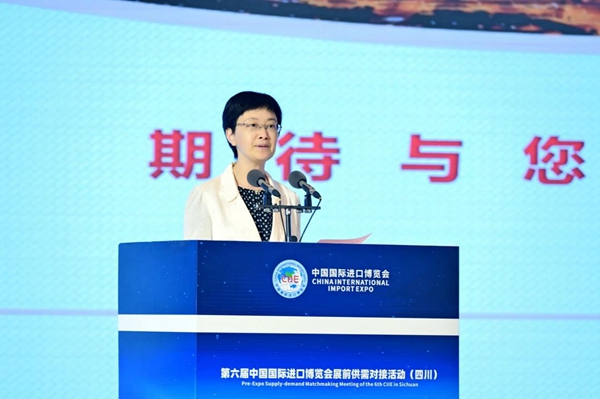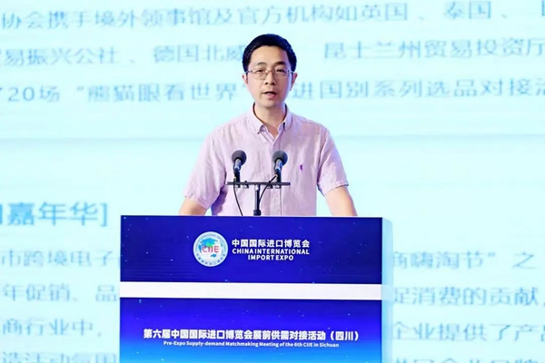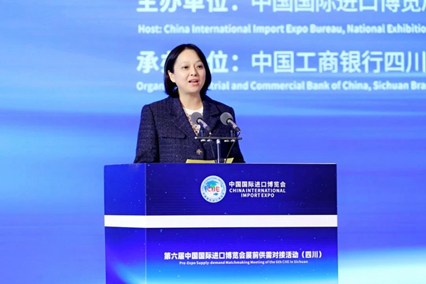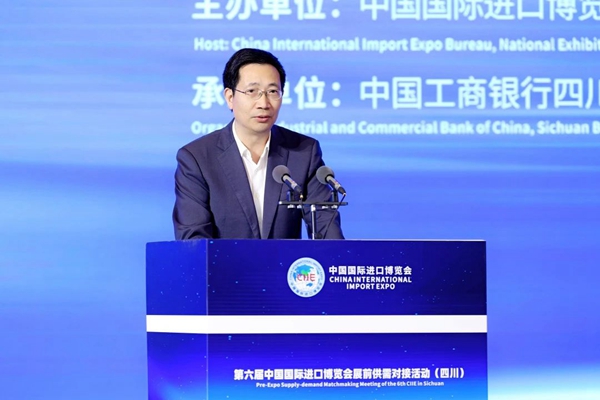 4月20日下午,第六届进博会展前供需对接活动(四川)在成都成功举办。本次活动由中国国际进口博览局、国家会展中心(上海)、四川省商务厅、中国工商银行主办,中国工商银行四川省分行、上海市分行和四川省商务发展事务中心承办。国家会展中心(上海)总裁助理宋尚哲,商务部驻成都特派员付艳,四川省商务厅副厅长陈友清,中国工商银行总行国际业务部副总经理张悦、四川省分行副行长周玥,成都市跨境电子商务协会秘书长姚正毅等出席活动并致辞。