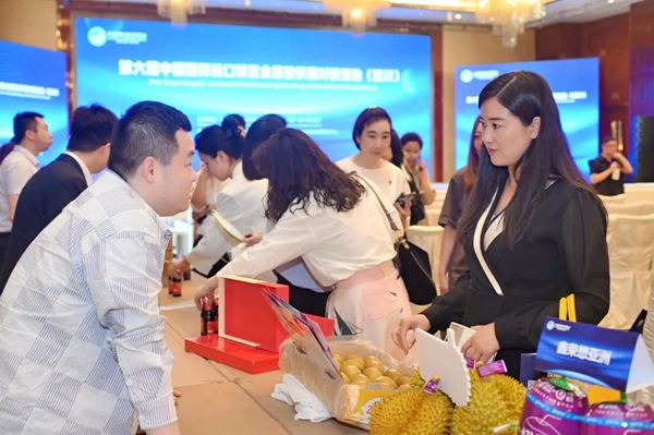 本场对接活动邀请了来自进博会食品及农产品展区和消费品展区的雀巢、都乐、乐斯福、鑫荣懋、德国卡赫、斯凯奇等30余家参展商到会,各参展企业在活动现场展示了本企业的特色亮点展品。其中,全球知名食品饮料公司雀巢展示了奶粉、咖啡、脆脆鲨系列等产品。著名新鲜水果生产和经销商都乐展示了木瓜、椰青、牛油果、玉米、蓝莓等新鲜水果。著名酵母生产商乐斯福展示了多品类燕子酵母。清洁设备和清洁解决方案企业德国卡赫展示了洗地机、喷抽机、高压清洗机、智能清洁机器人等产品。著名运动休闲品牌斯凯奇带来了富含创新科技、能适配多场景需求的Slip-ins闪穿鞋。