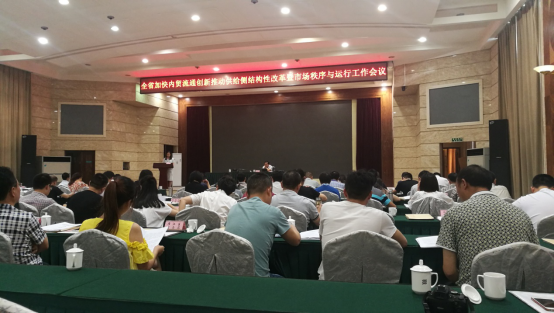为贯彻落实省第十一次党代会、国务院加快内贸流通创新推动供给侧结构性改革扩大消费工作部署,推进市场秩序和运行与消费促进工作,省商务厅于2017年6月22日-23日在成都市铁道大酒店召开了全省加快流通创新推动供给侧结构性改革暨市场秩序与运行工作会议。省商务厅有关处室负责人、各市(州)商务主管部门主要负责人、传统商贸流通转型升级、脱贫奔康示范县、市场监测先进县(市、区)及部分商务综合行政执法试点县级商务主管部门、四川省商务发展事务中心等相关人员约150人出席了会议。省商务厅刘欣厅长出席会议并讲话,刘欣厅长就近年来内贸流通工作取得的成绩进行了总结,并分析研判形势,安排部署下一阶段内贸流通供给侧结构性改革重点工作。商务厅市运处、市建处等7个内贸处室也分别就如何加快促进内贸流通创新推进供给侧结构性改革扩大消费并结合处室职能提出了工作要求。