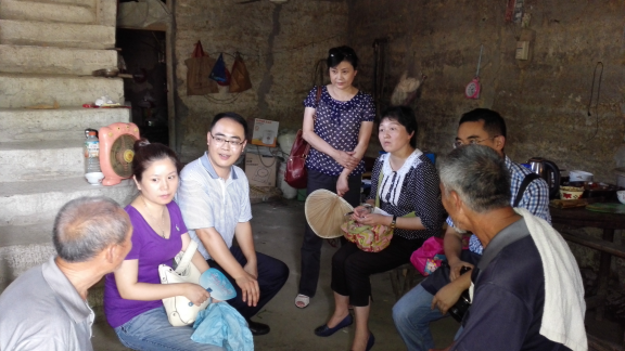 2016年7月28日上午,四川省商务发展事务中心人事培训党小组一行6人在组长熊毅副主任的带领下,一大早出发赶到帮扶对象邻水县城南镇芭蕉村7组刘汝生家,与帮扶村民刘汝生、村干部刘凤余进行了细致的交流,为刘汝生一家带去了党员同志们自发捐赠的电饭煲,家用小洗衣机、衣物、背包等日用品,还给刘汝生的一对孙子孙女带去了近百册的图书、小礼品、食品等。除此之外,还按照党支部结对帮扶计划带去了购买鸡苗、新农合医疗保险及学校伙食补贴款。