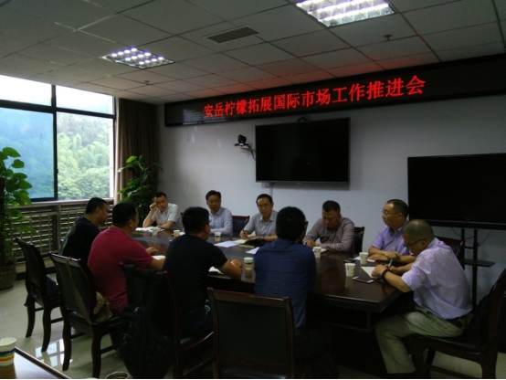 资阳市商务局副局长张君林、安岳县商务局局长杨久红以及四位安岳县柠檬生产和出口的企业家参加会议。